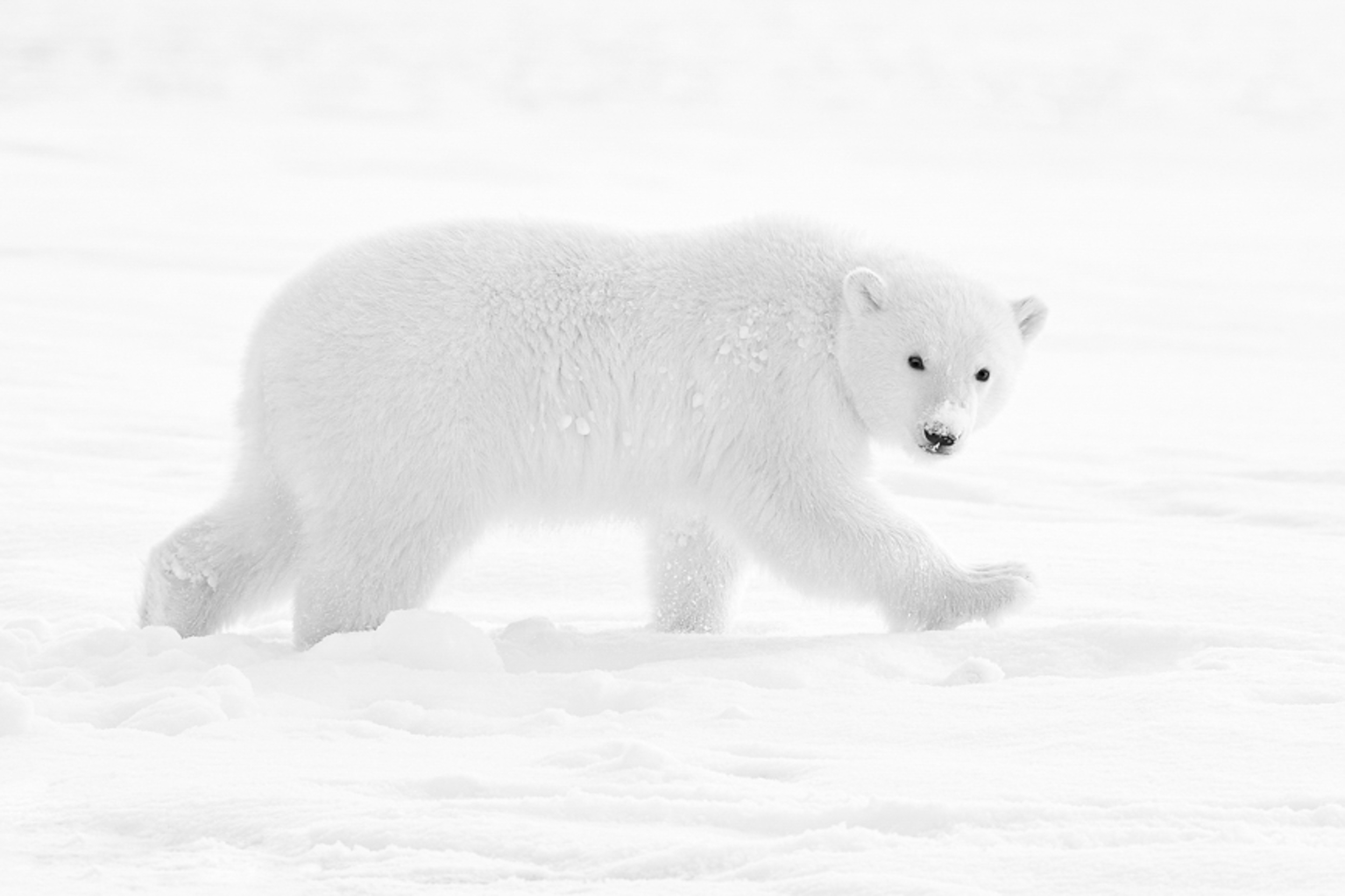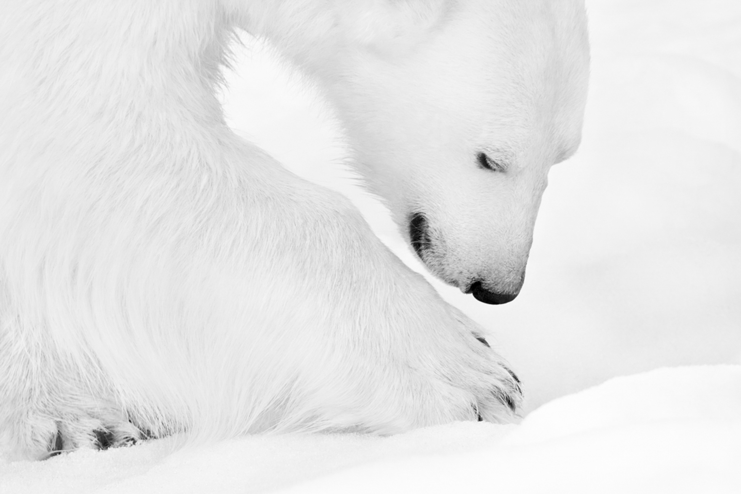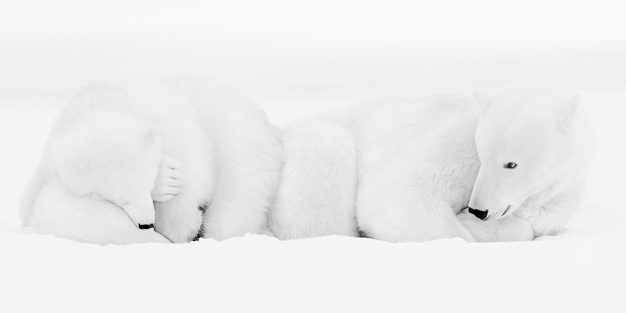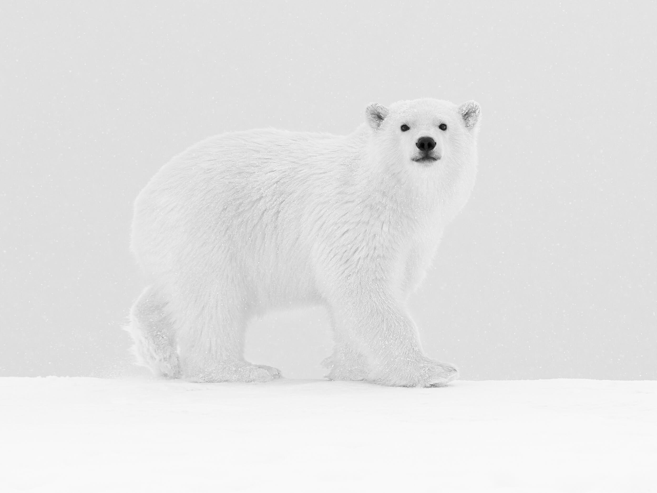 Un nouveau travail sur les ours polaires qui ne figure dans aucun ouvrage. Photographier l’ours polaire avec mon regard d’enfant, en souvenir de l’ourson en peluche que j’avais à 6 ans.